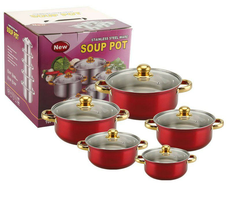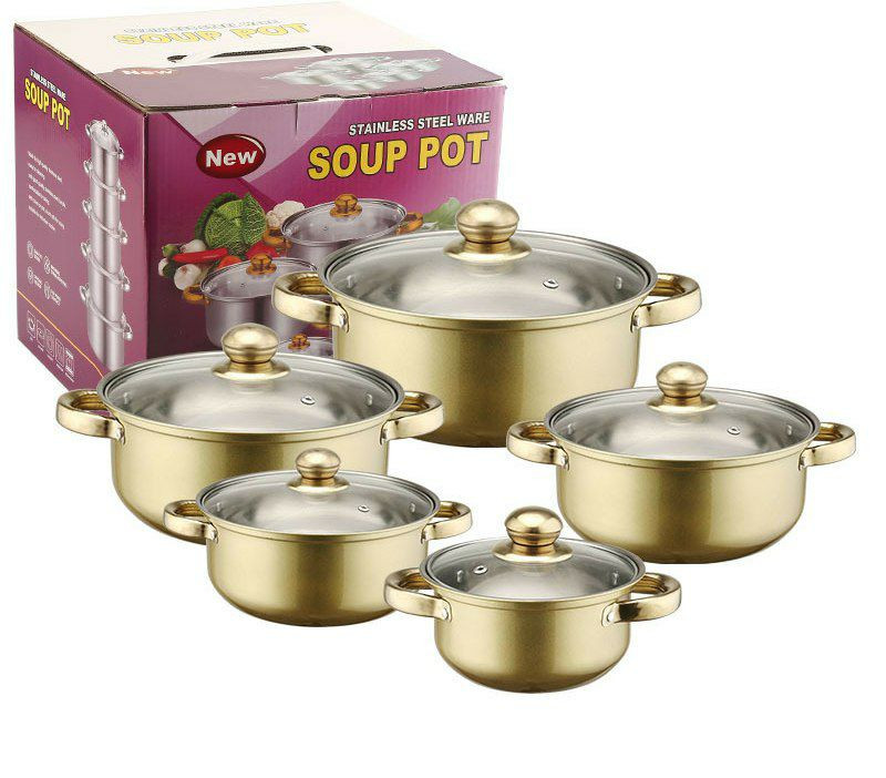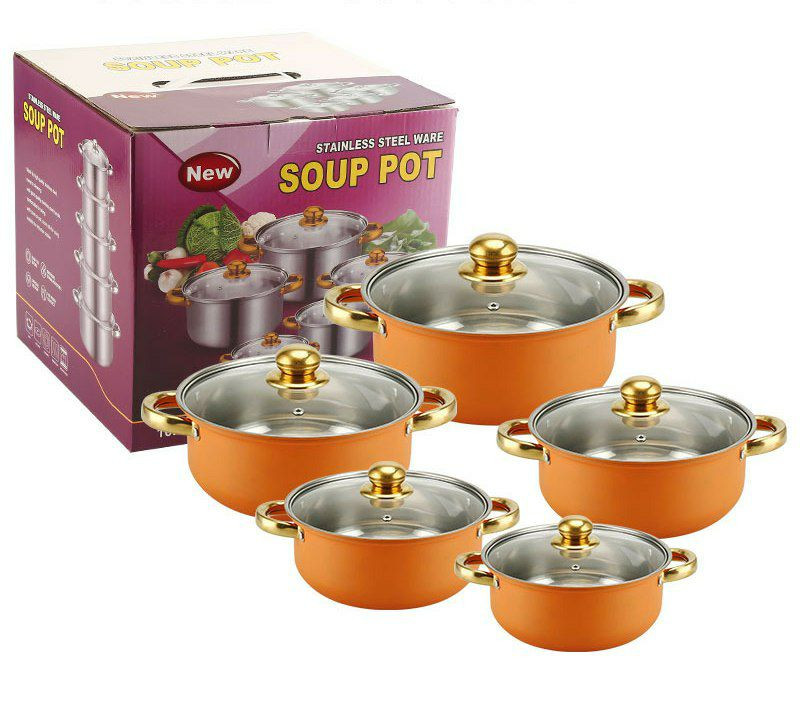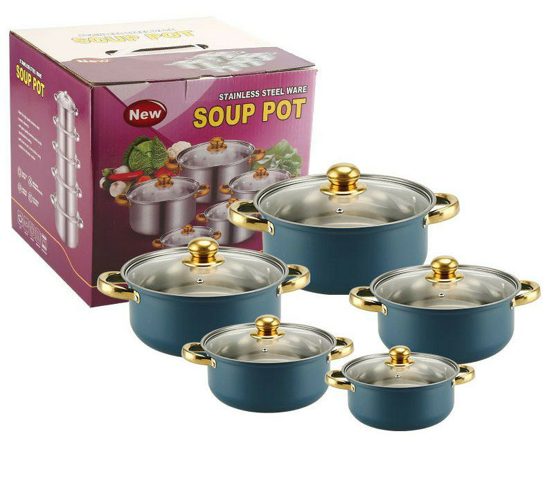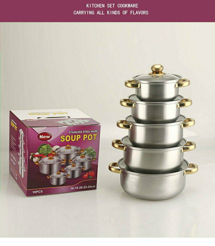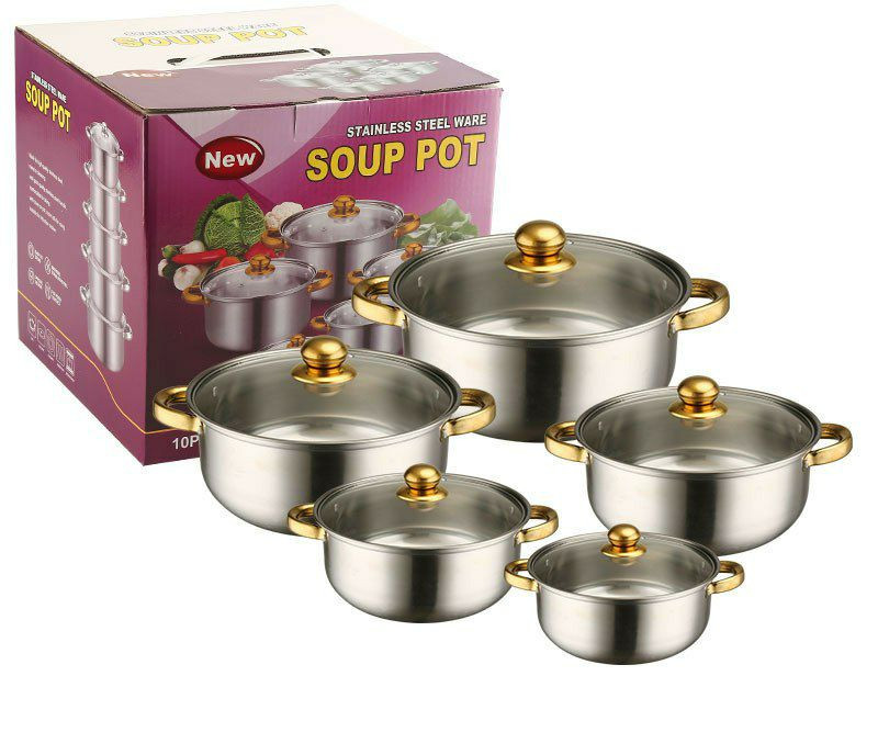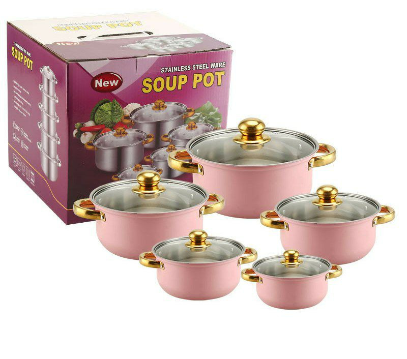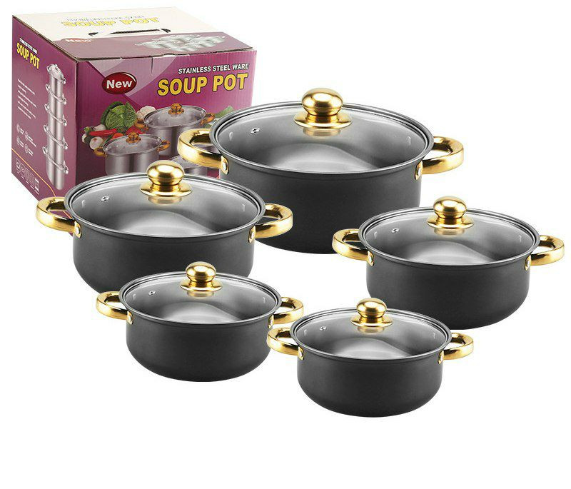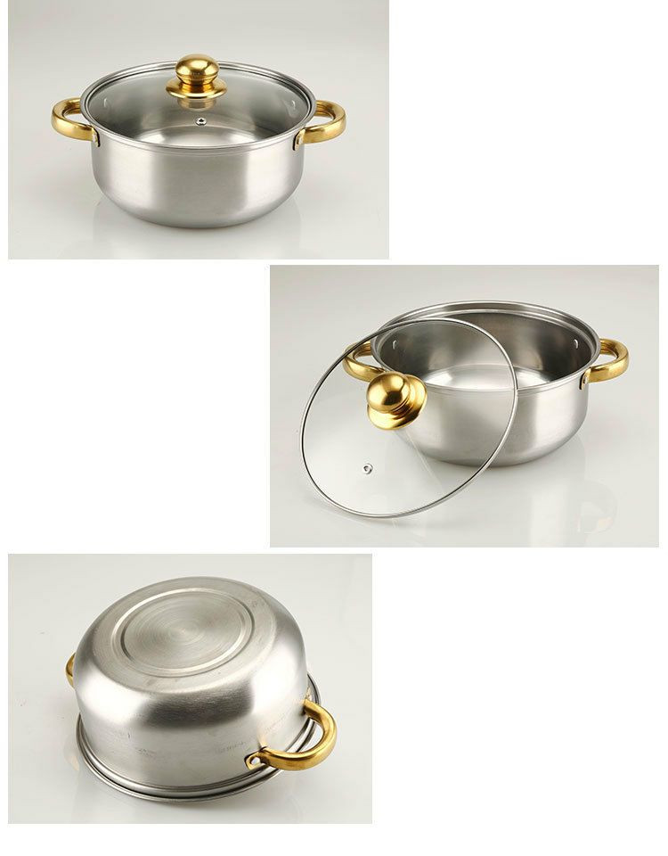 Ensemble de Casseroles de 5pcs en Acier Inoxydable Avec Poignée et Couvercle en Verre, Pot à Soupe 18/20/22/24/26CM, Casseroles Empilables, Base épaissie, Basics Batterie de Cuisine à Induction,