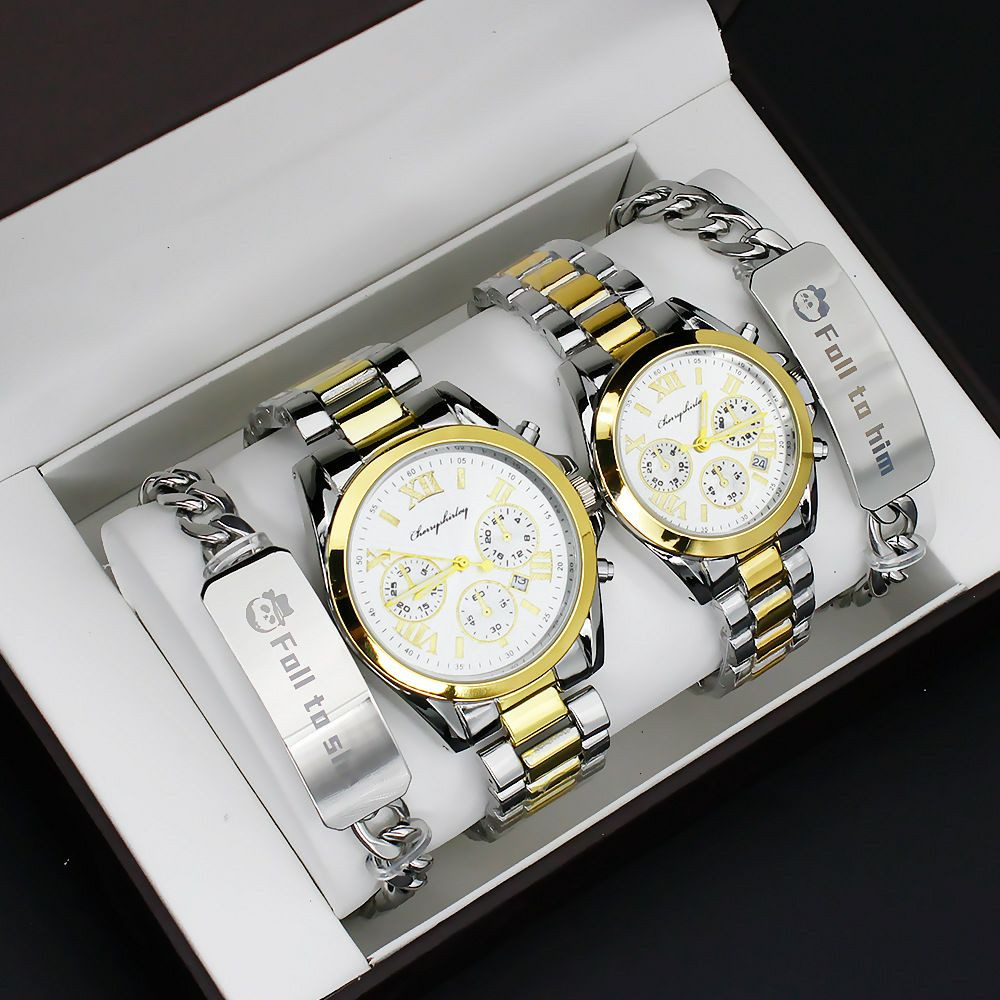 Bracelet en acier inoxydable Bracelet Quartz Watch Set Couples Wrist Watch
