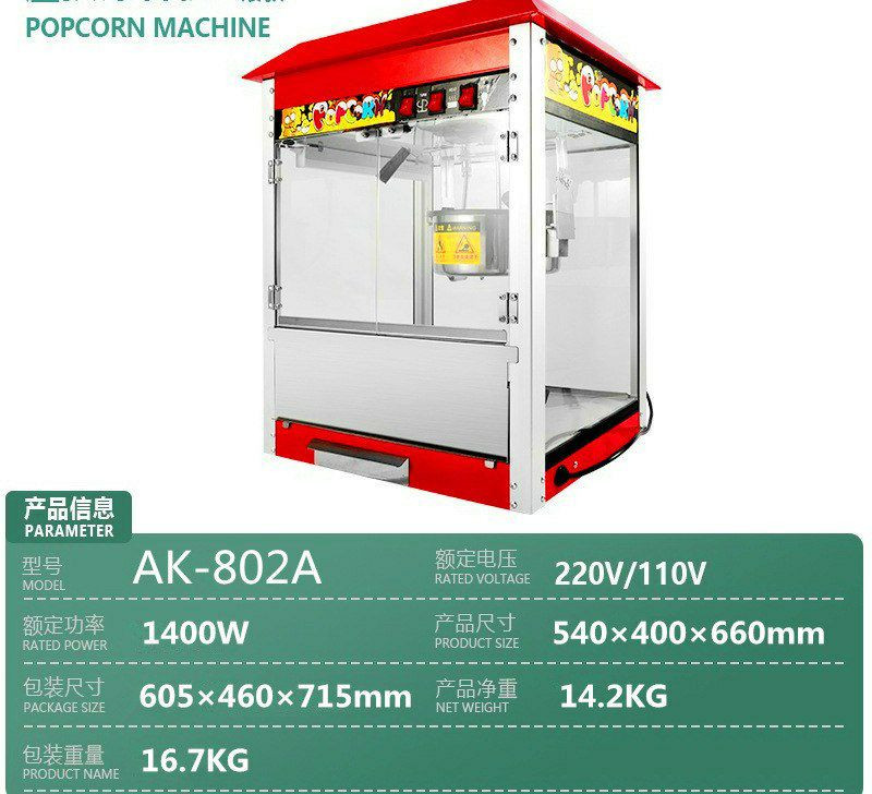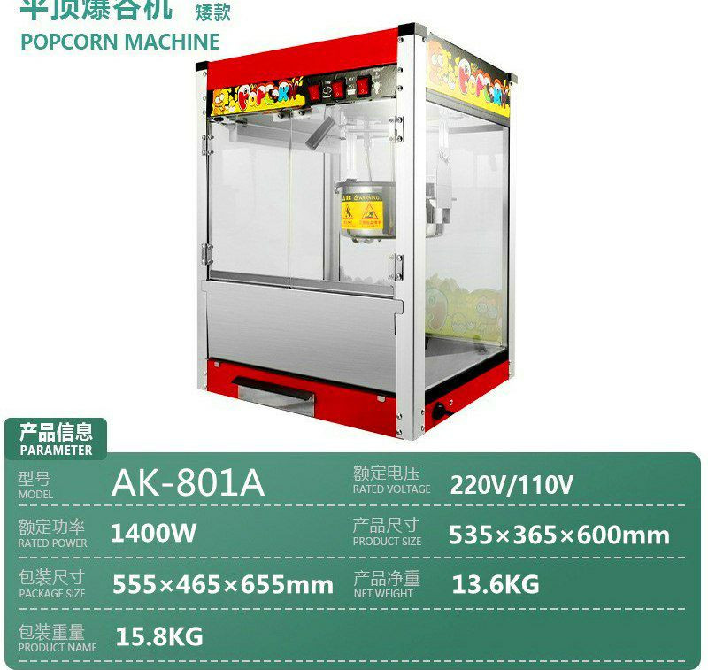 Machine à pop-corn professionnelle, le modèle AK-802 et AK-801