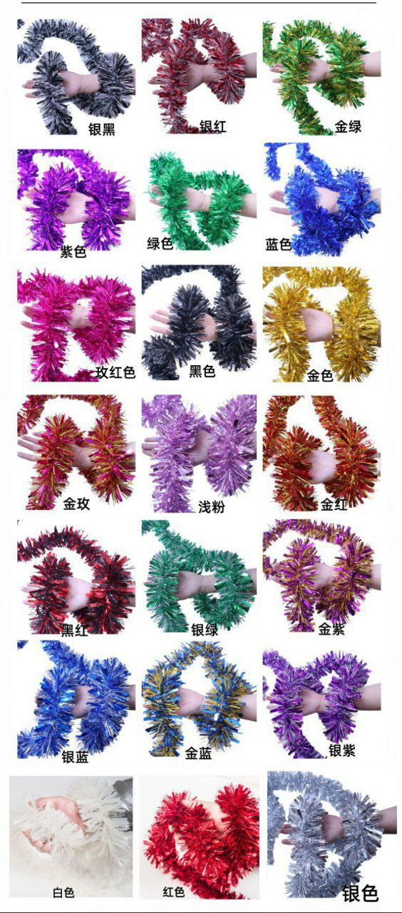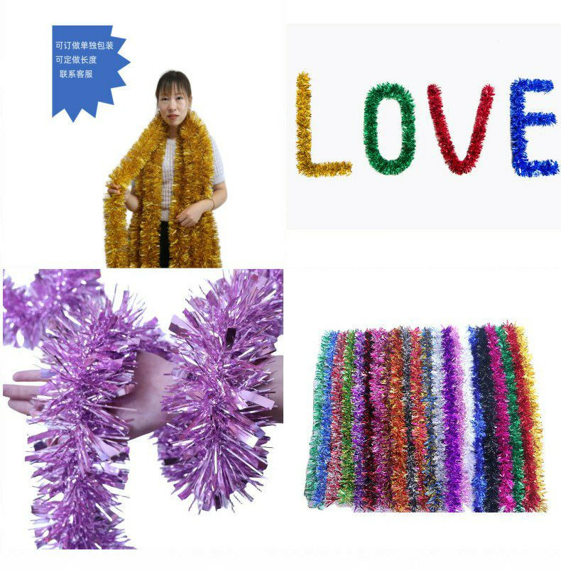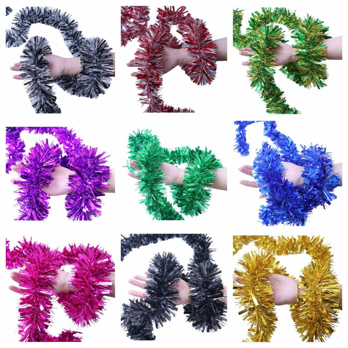 Guirlandes ruban de Noël en tinsel, disponibles en plusieurs couleurs.