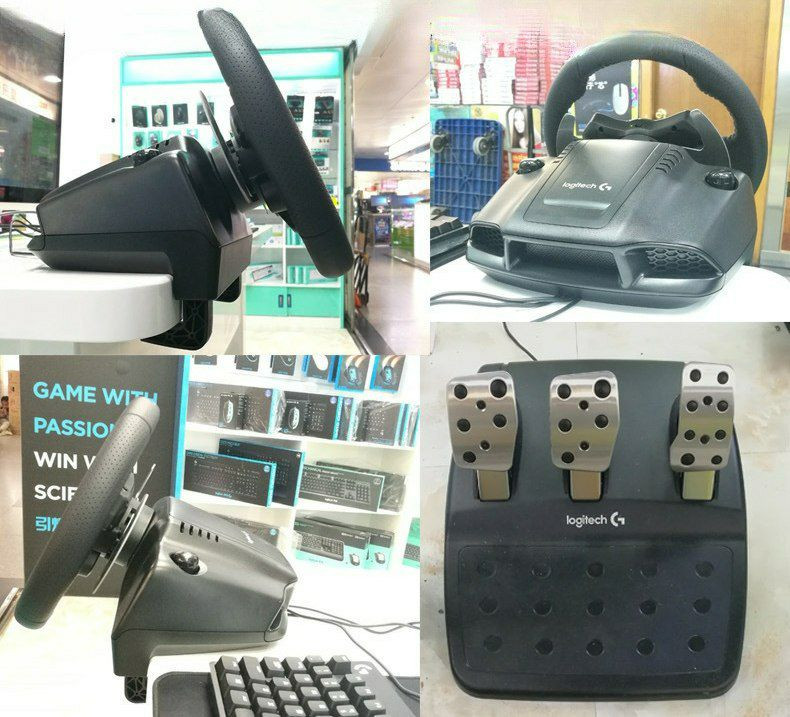 Le pédalier inclus possède trois pédales (accélérateur, frein, embrayage) et une pédale de frein progressive qui simule un système de freinage sensible à la pression.