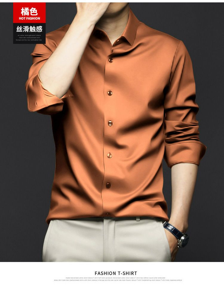 Chemises à manches longues pour hommes, anti-rides, sans repassage, vêtements de cérémonie professionnels, chemises d'affaires haut de gamme en soie glacée, chemises en pouces