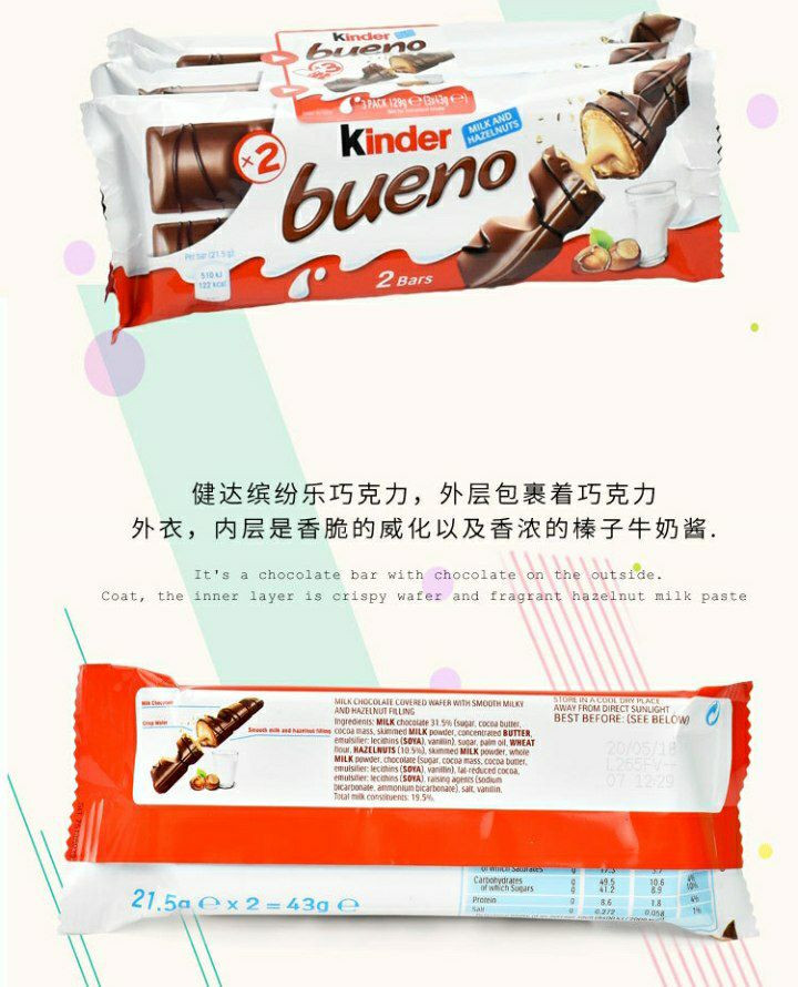 Boîte de barres chocolatées Kinder Buen Kinder Milk Noisette Wafer Chocolate Boxed Chocolate Bags 30 Packs Full Box