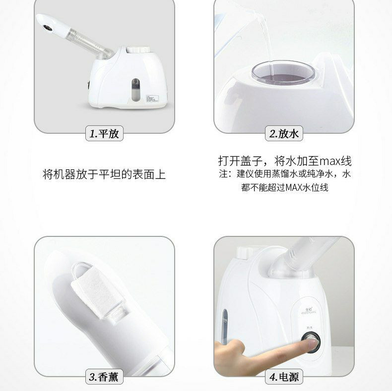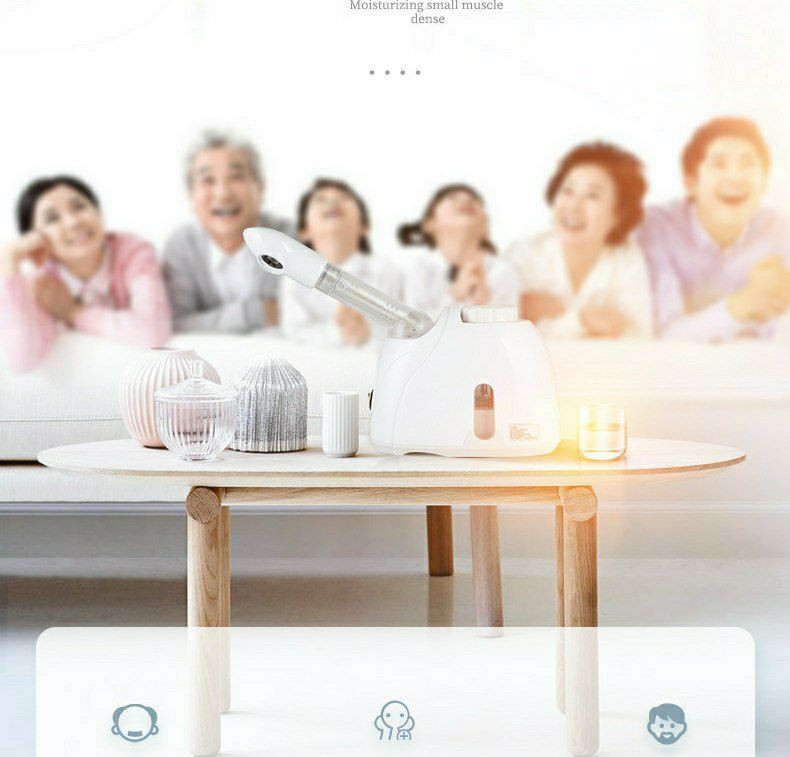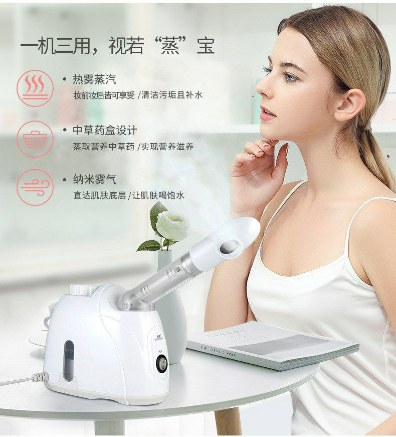Vaporisateur facial  blanc, conçu pour l'hydratation de la peau et le nettoyage en profondeur.