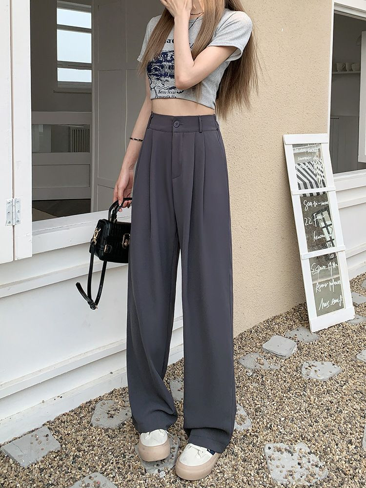 Pantalons élégant de costume  avec taille élastique, pantalons décontractés slim, pantalons larges amples d'été, pantalons drapés taille haute