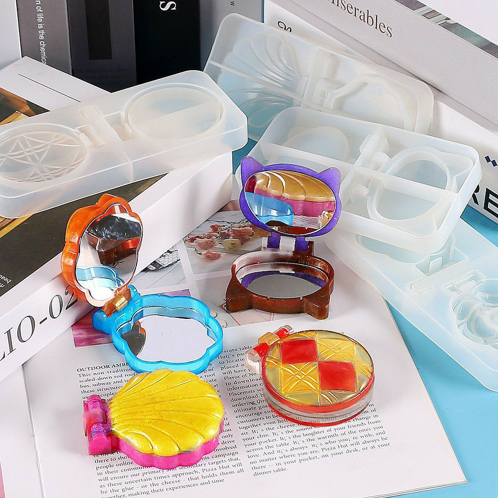 Moules en silicone pour créer des miroirs de poche en résine époxy.