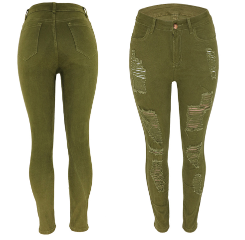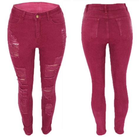 Jeans déchirés au genou pantalons chinos multicolores slim pour femmes grande taille