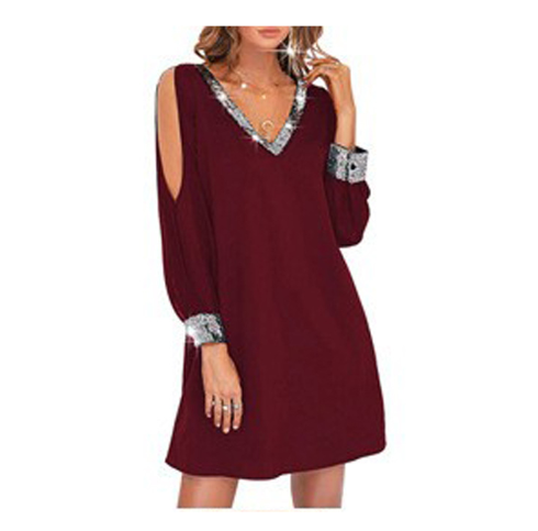 Nouvelle robe patchwork de couleur unie, à manches sans bretelles et à col en V profond, pour femmes.