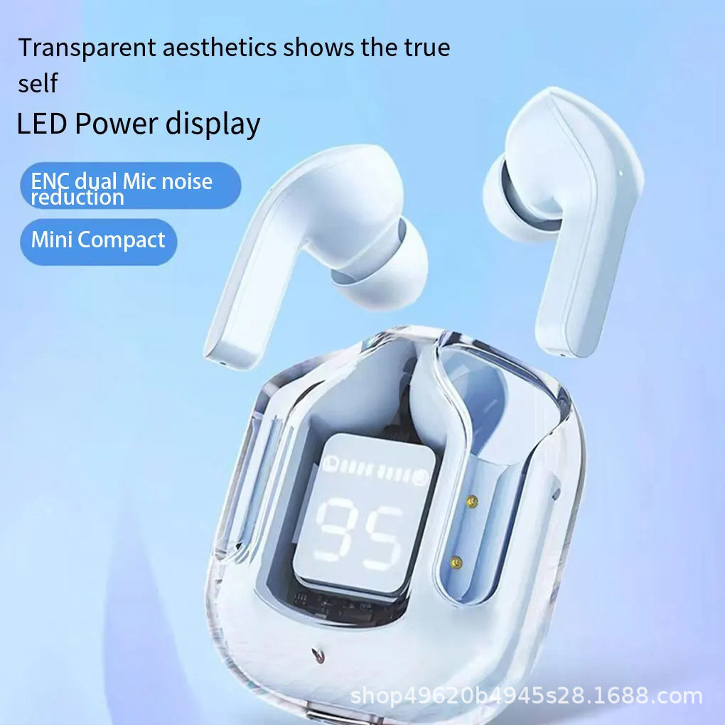 Ecouteurs Bluetooth Air31 sans fil avec boîtier transparent, compatible avec la réduction de bruit, affichage numérique, conçu pour les sports, et le modèle air39TWS, est un must-have pour les amateurs de musique et les sportifs.