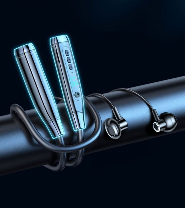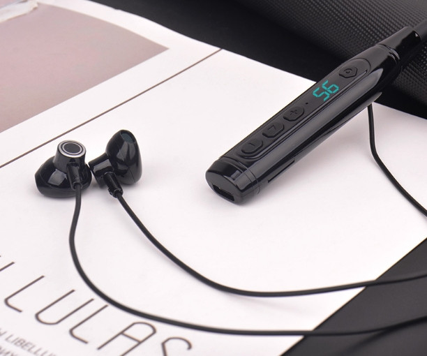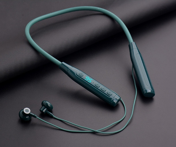 Casque Bluetooth sans fil DuoPuni avec un grand autonomy de batterie, un affichage de la batterie, une conception pour le sport avec un port de cou sans fil, et une grande autonomie pour les écouteurs
