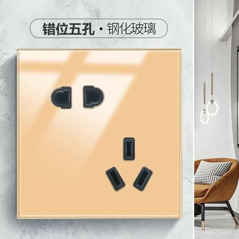 ComOne: Prise électrique International à 5 trou non alignés doré et avec du verre trempé - Prise de luxe fantaisiste pour maison et villa