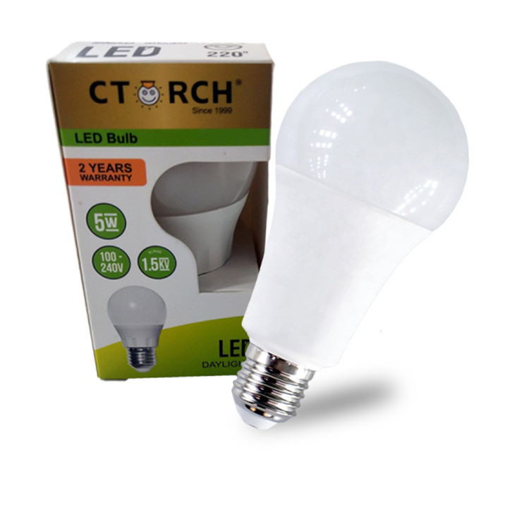 ComOne: Ampoule LED C-TORCH 5W. L'ampoule désigne l'enveloppe de verre protégeant un filament porté à incandescence, l'objet final s'appelant lampe électrique. Ce système est destiné à produire de la lumière à partir de l'électricité