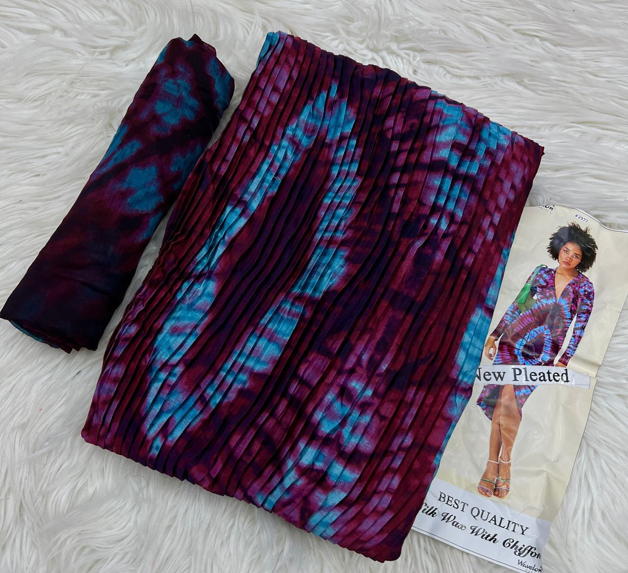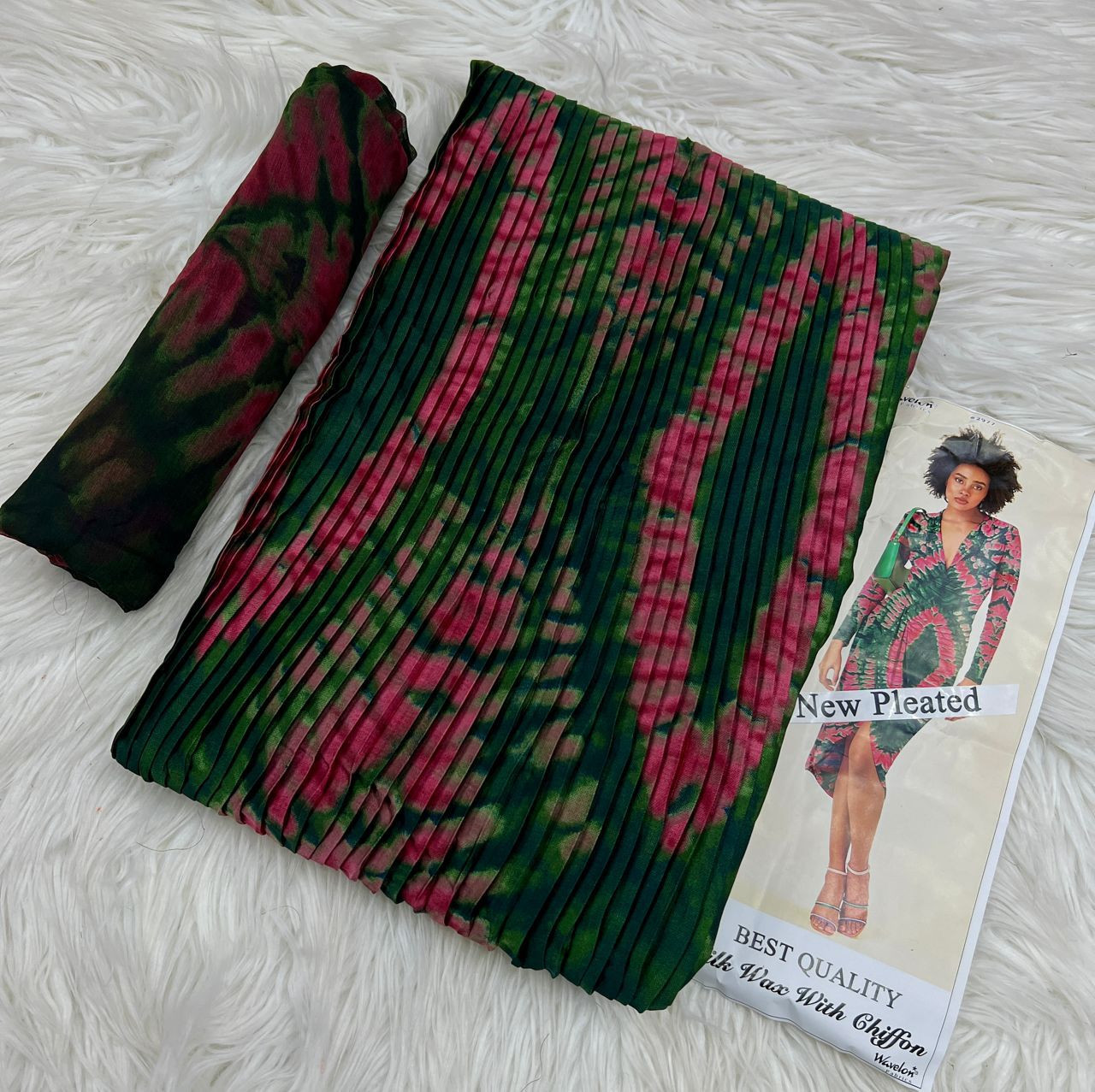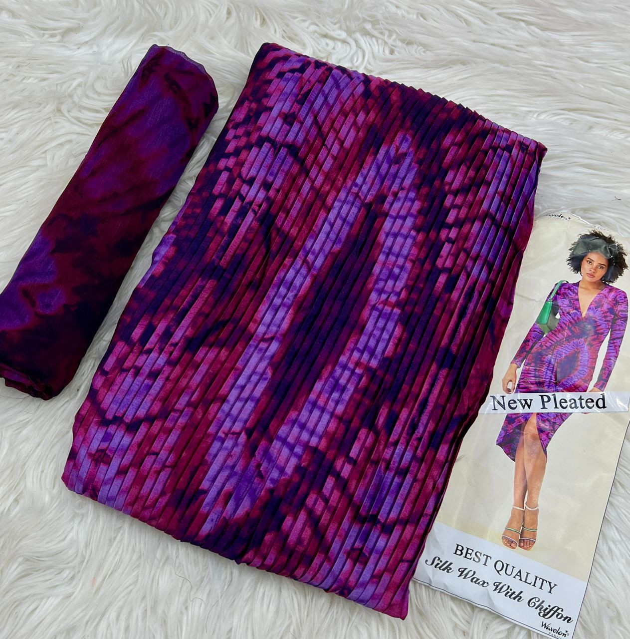 Tissu soie Wavelon Plissé 4yards de tissu+2 yards de foulard=6yards