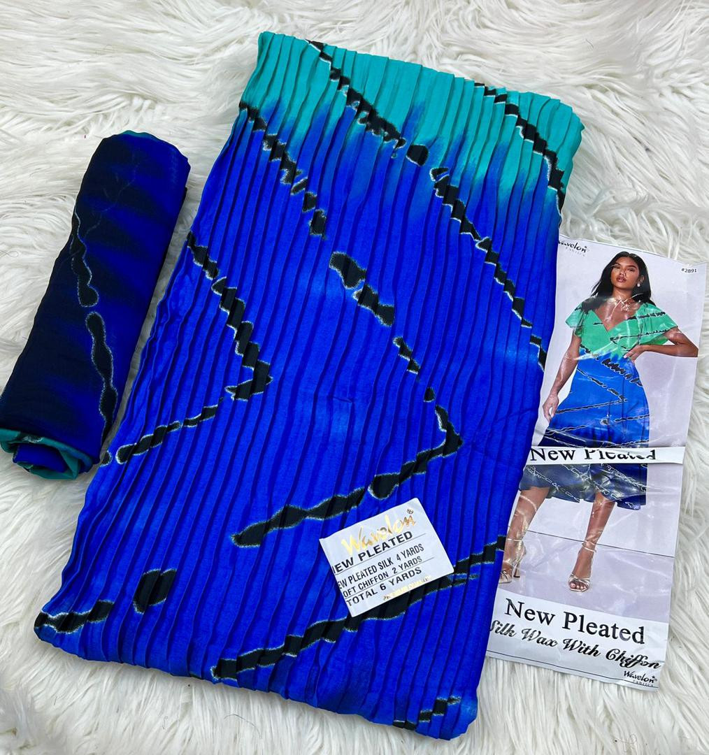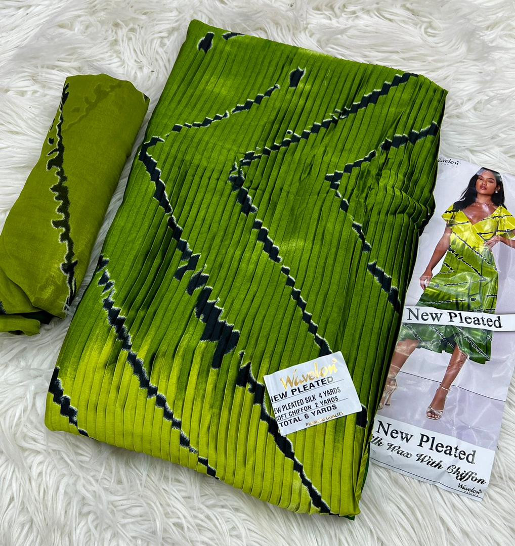 Tissu soie Wavelon plissée 4yards de tissu+2 yards de foulard=6yards